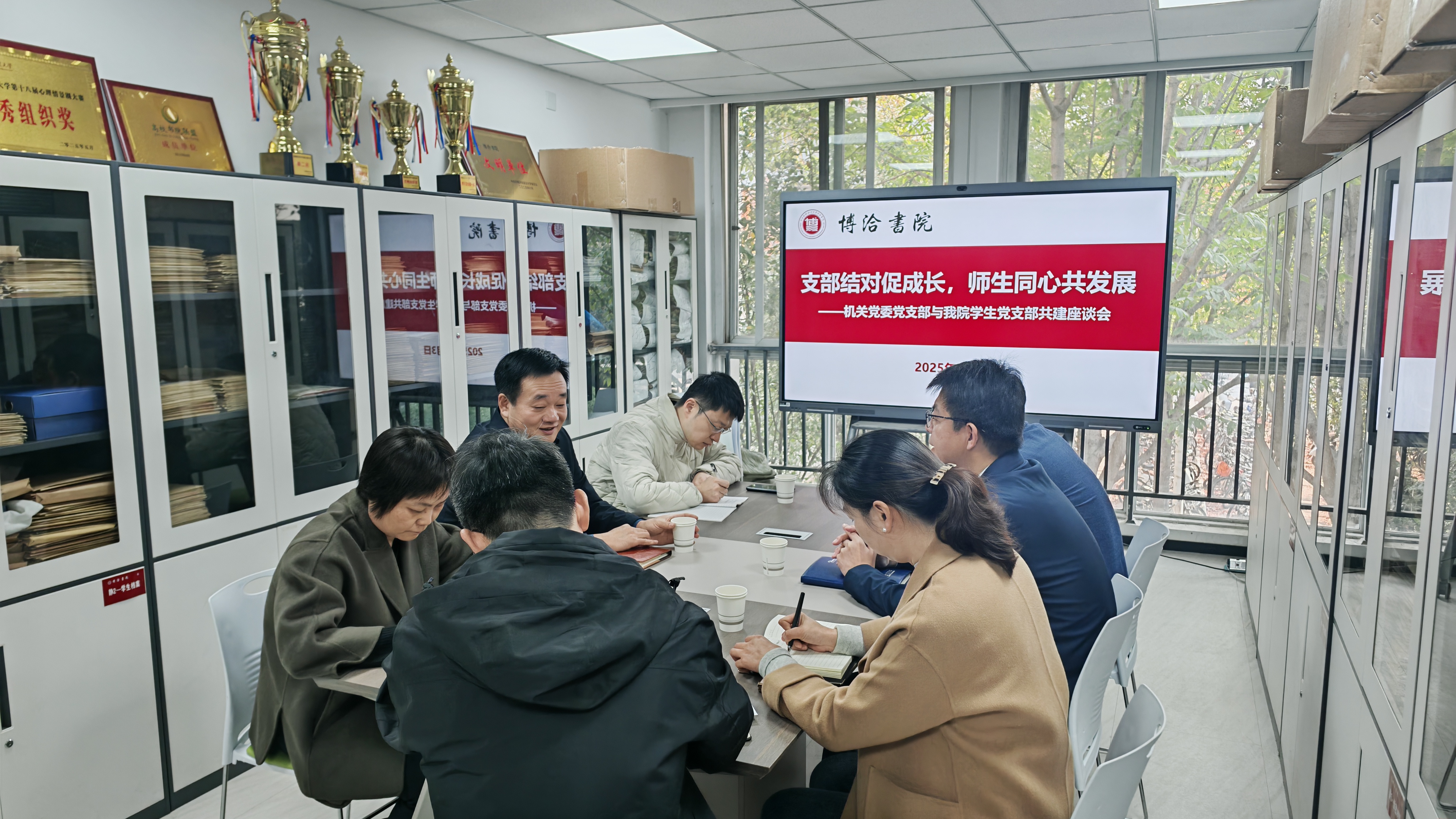为进一步加强基层党组织建设,推动机关党建与人才培养深度融合,11月3日,bv伟德国际1946党支部到博洽书院进行调研交流,并与博洽书院学生党支部以“支部结对促成长,师生同心共发展”为主题,召开共建座谈会,双方党支部党员代表参加会议。